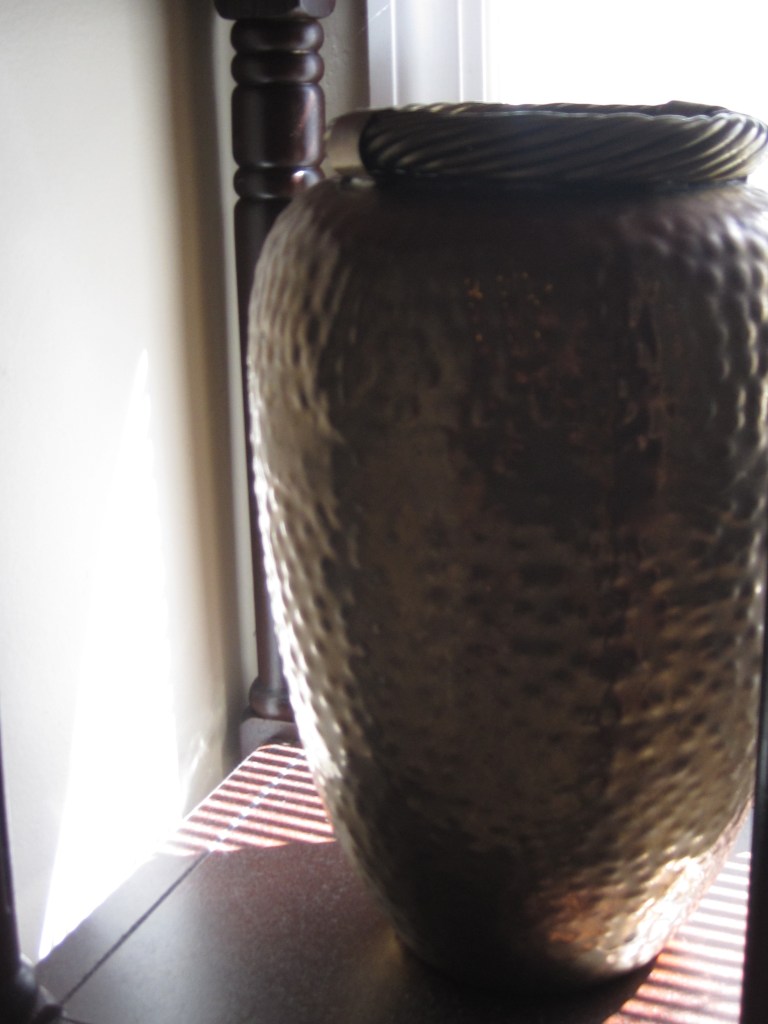 ∞ A gold Egyptian style vase that’s currently sitting in the front hall ∞