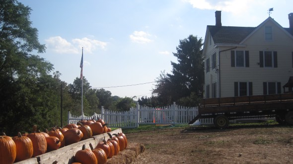 ∞ A slightly creepy farmhouse + rows of mini pumpkins  ∞