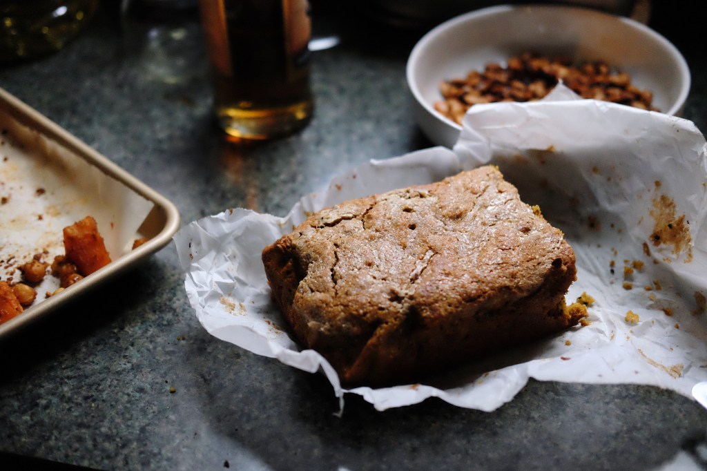 A few weeks ago, I was experimenting in the kitchen before Shabbat and uploaded a snap of a cake I’d made to Instagram. It was a loaf cake, an odds-and-ends kind of thing, made with the remainder of a can of pumpkin, a mixture of the oat and buckwheat flours I had in my pantry, and some halva and tahini I’d added for good measure. It was tasty, but lacking something, so when a few of you asked for the recipe, I promised I’d rework it and share it.